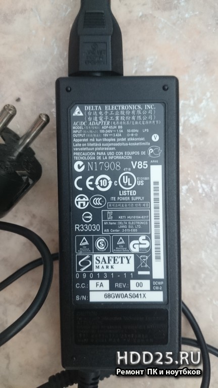 - зарядное устройство или блок питания для ноутбука DNS H36FD i5 PA-1650-68 3,42A 19V