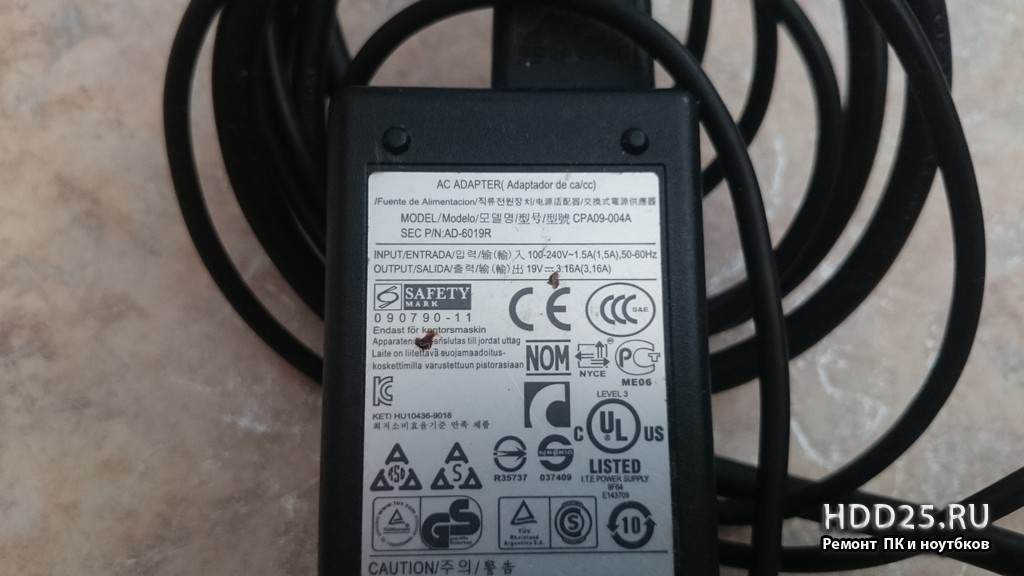 - зарядное устройство или блок питания для ноутбука AC adaptr for Samsung NP-RV515 prodam AD -6019R