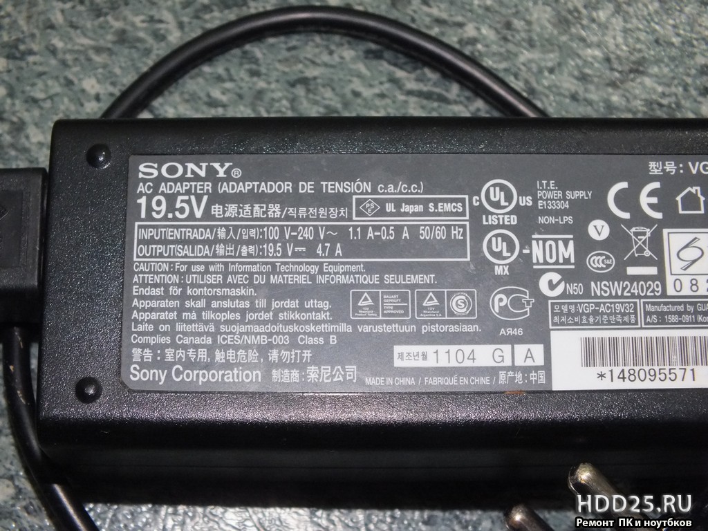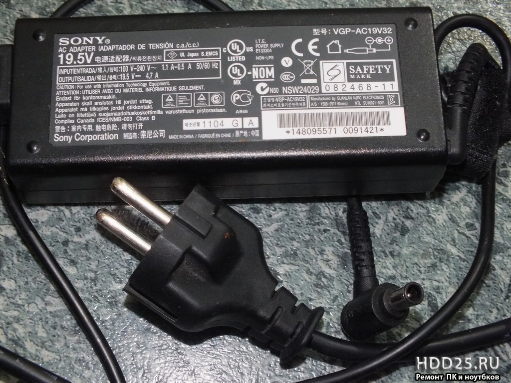 - блок питания (зарядное устройство) AC ADAPTER VGP-AC19V32