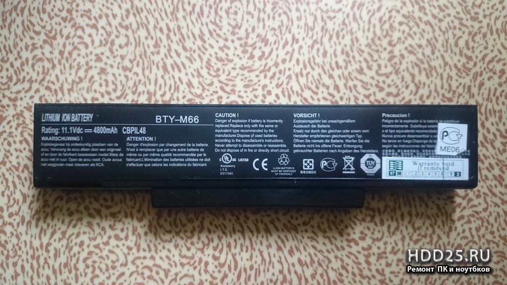 - батарею для ROVER BOOK Pro 510L Li-Ion BTY-M66 11,1V 47Wh 4800mAh Battary