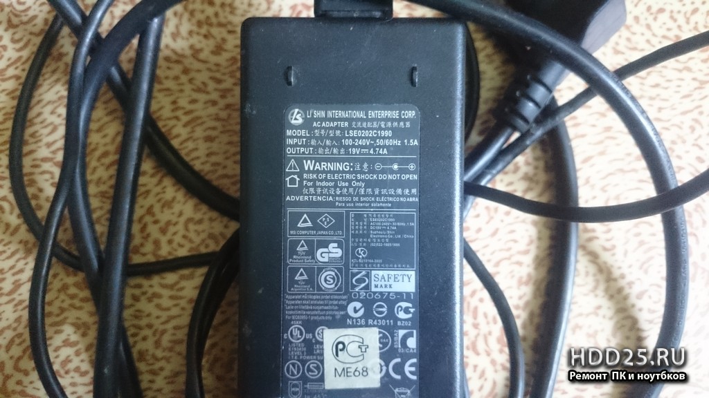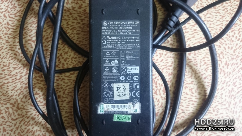 - блок питания (зарядное устройство) AC ADAPTER LSE 0202c1990 19V 4,74A для ROVER BOOK Pro 510L
