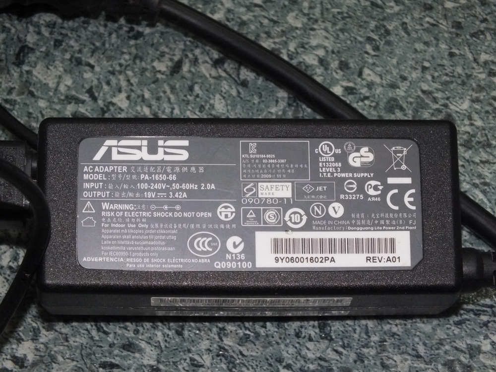 - блок питания или зарядное устройство для ноутбука ASUS N61V AC Adapter model: ADP90SB-BB AC 100-240V, 50-60 Hz, 1,5 A (19 Vdc 4.74A )