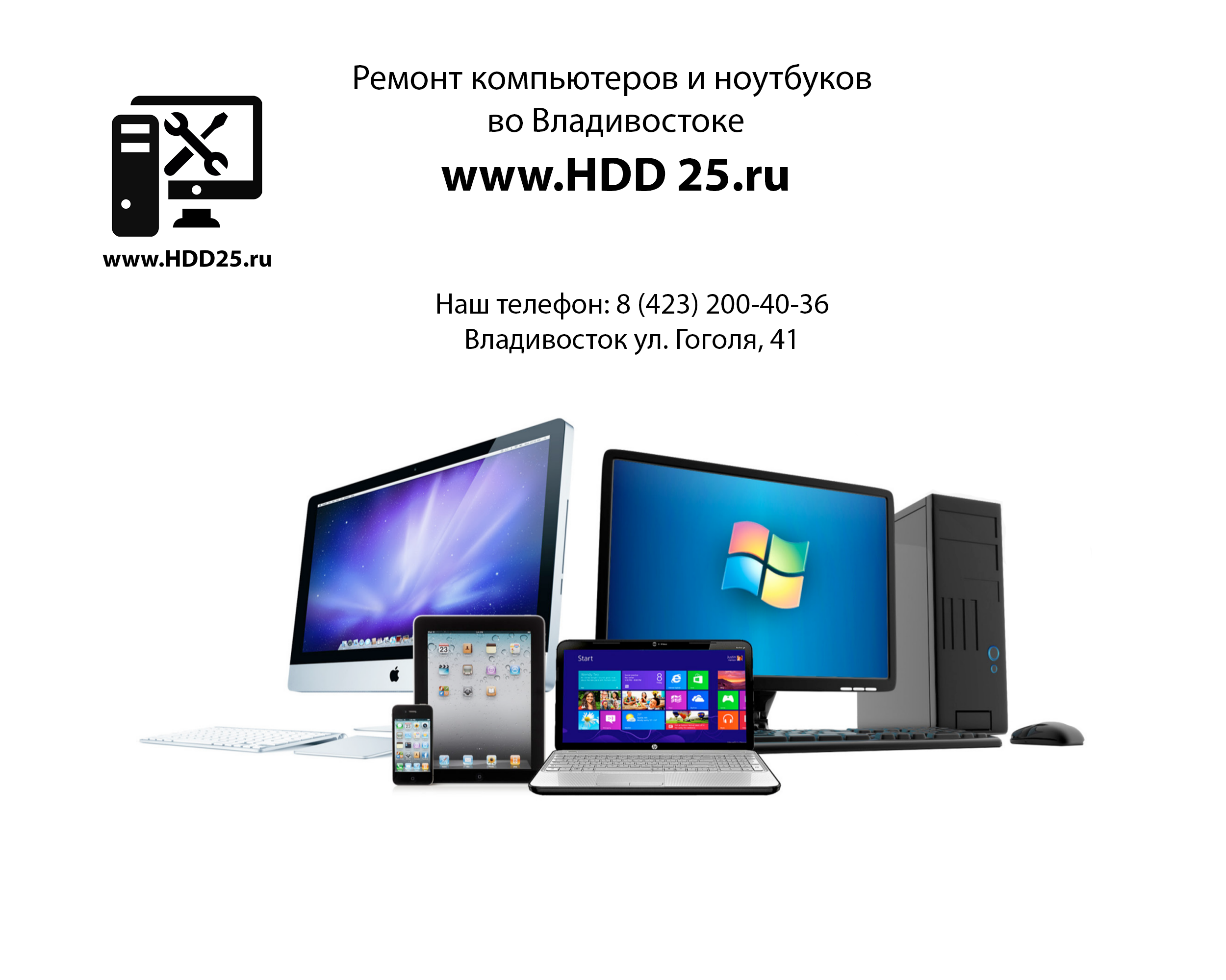 Ваш компьютерный помощник HDD25.RU звоните г. Владивосток 8(423) 200-40-36.