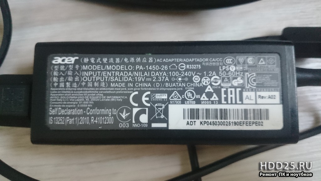 - зарядное устройство или блок питания для ноутбука Acer E5-573 N15Q1