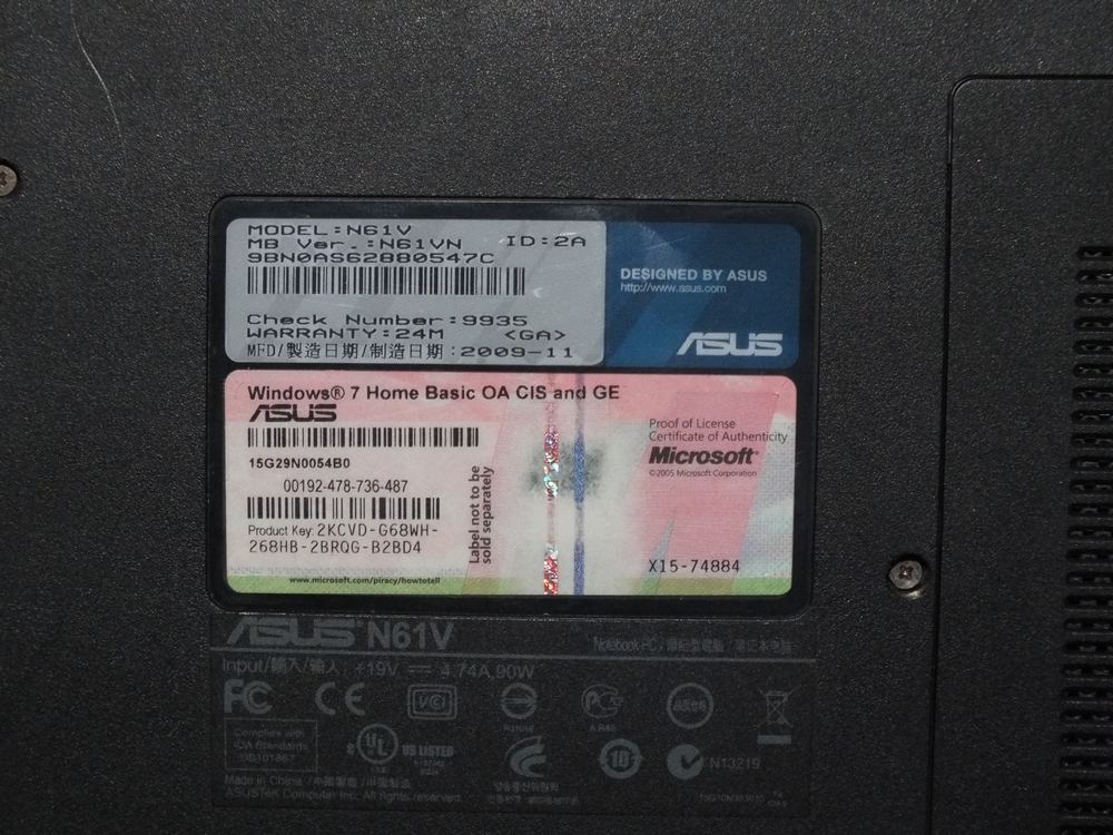 - батарею Asus N61V Li-Ion Battary Model: A32-M50 (+10,8 V, 44000 mAh, 48 Wh)