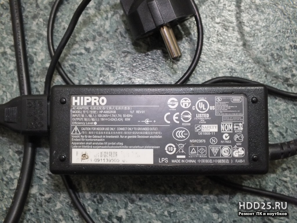 - блок питания (зарядное устройство) AC ADAPTER HP-A0652R3B 65w 19v 3,42A для Асер эспаер 5538 мс 2264