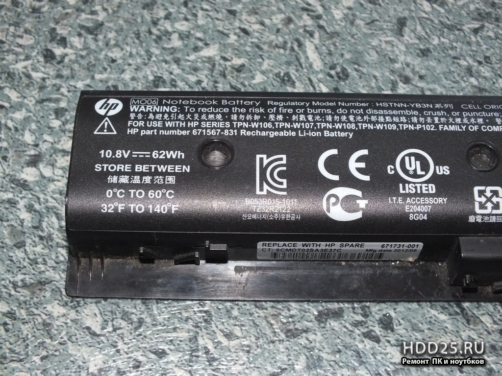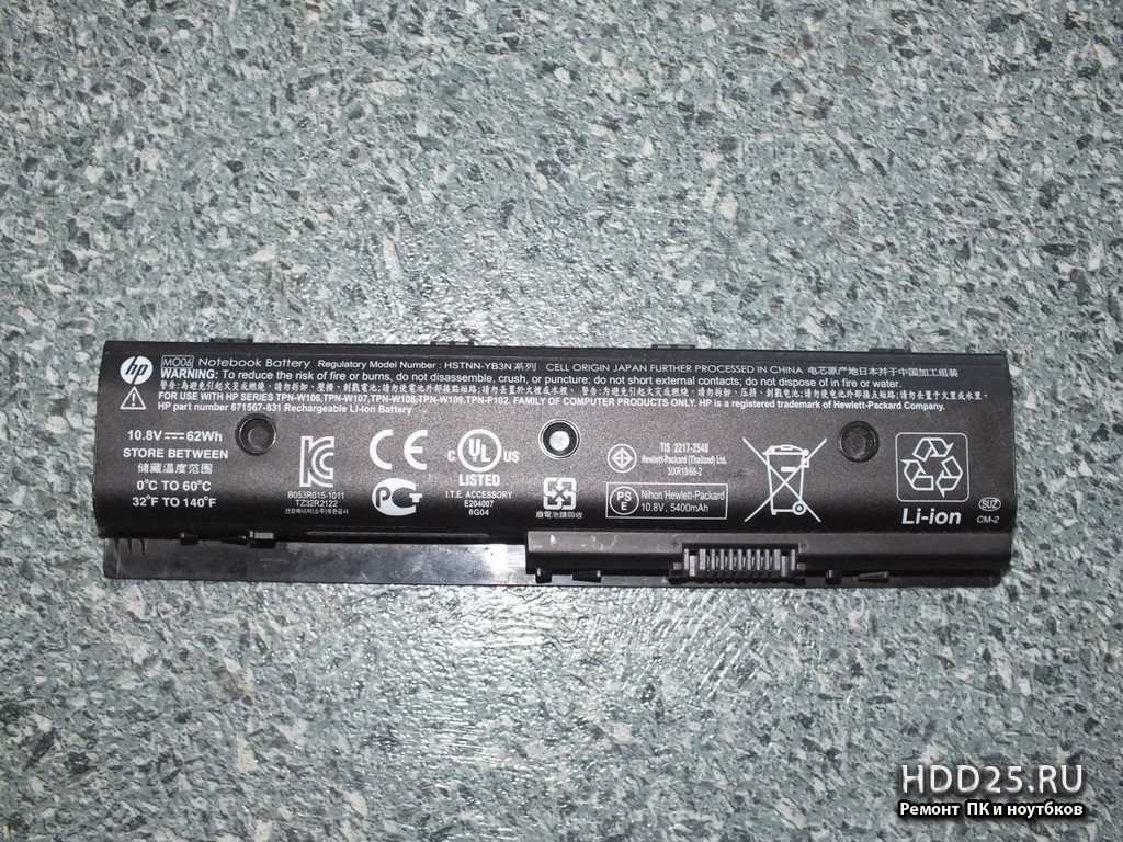 - батарею для HP ENVY M6 Li-Ion Battary HSTNN-YB3N (+10,8 V, 62 Wh, 5400 mAh)