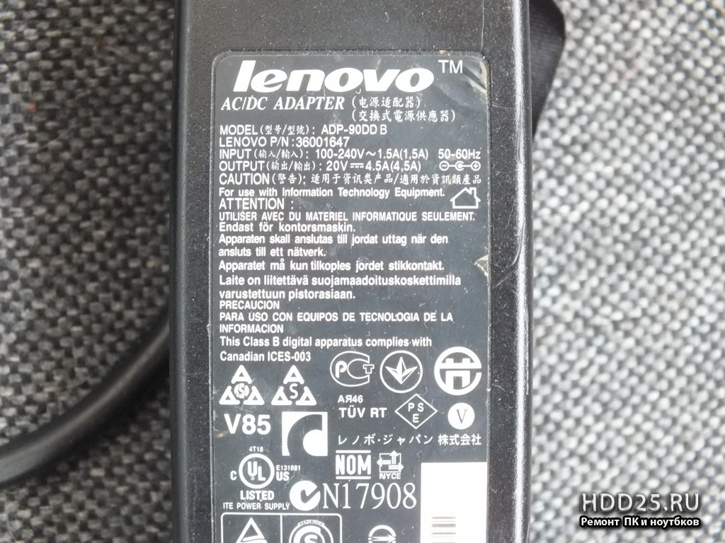 - блок питания (зарядное устройство) AC DC ADAPTER ADP-90 DDB 20V 4,5A