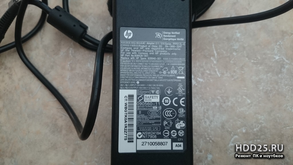 - зарядное устройство или блок питания для ноутбука HP Pavilion DV6-1317er PA-1900-32HT